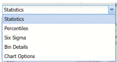 Click the down arrow next to Statistics to view Percentiles or Six Sigma indices for each type of data.