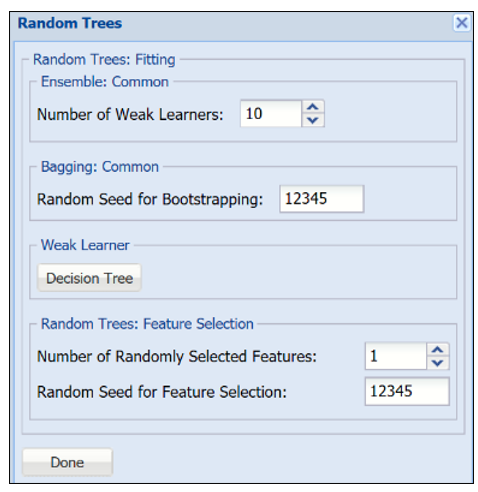 Find Best Model Predict Random Trees Ensemble Method Option Dialog