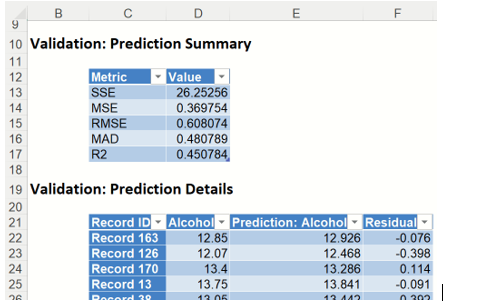 Open wine.xlsx by clicking Help – Example Models – Forecasting/Data Science Examples.