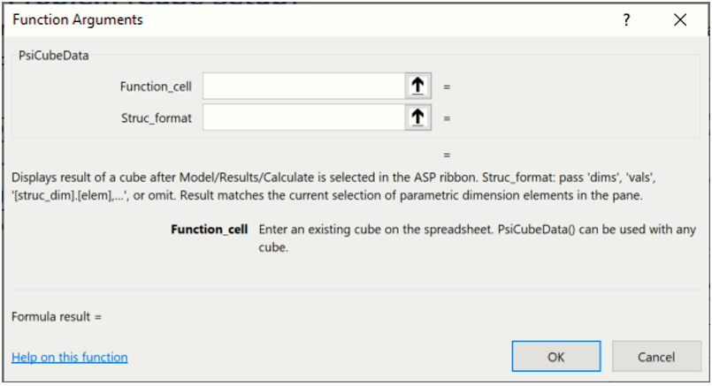 output_cell (required): An existing cube on the spreadsheet. (PsiCubeData() can be used with any cube.)