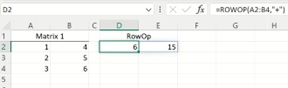 See the ROWOP function in cell D2 = ROWOP(A2:B4, “+”)